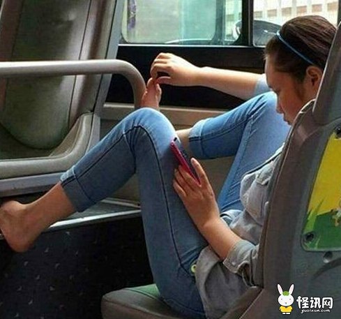 妹子玩手机的真霸气